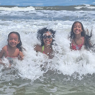 Família na água, ótimos momentos com as enormes ondas para bodyboardear. Mamãe está feliz - entra dançando no mar e nos faz sorrir.